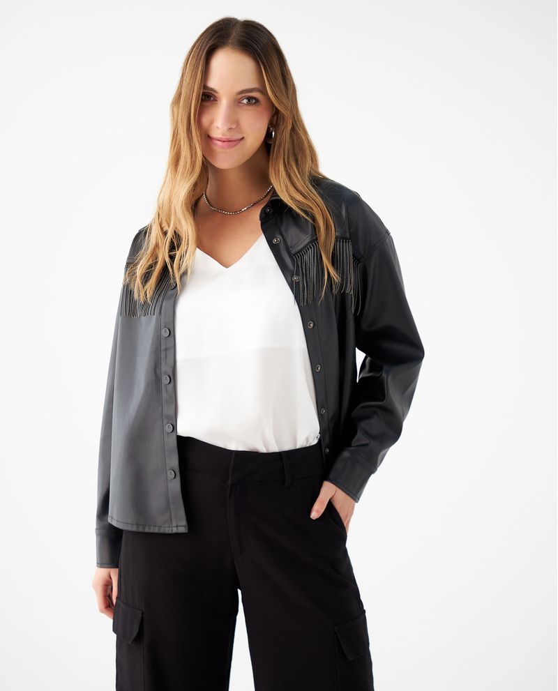¡Para un look tan juvenil como te gusta lucir en tus planes con amigas! Esta chaqueta tiene el mejor sello Esprit y llegó con diseños renovados que impactarán positivamente tu armario. Sus flecos decorativos en frente y posterior le dan un estilo texano muy llamativo, mientras que su tela estilo cuero te brinda ese aire retro que siempre va bien.
