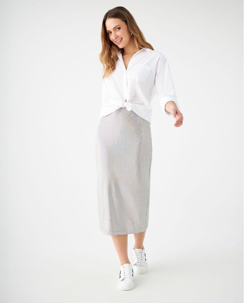 Días más disco para momentos más memorables. Si buscas un look que combine lo mejor del estilo retro con una silueta moderna, ¡esta falda es para ti! Su semiabertura le añade un toque de sensualidad, mientras que el elástico en la cintura asegura un ajuste cómodo y favorecedor. Perfecta para destacar en cualquier ocasión.