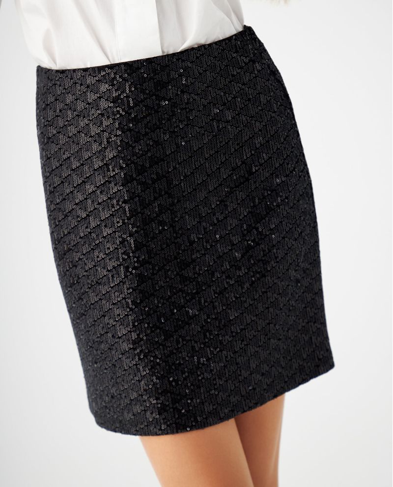 Las noches más inolvidables junto a esas amigas de toda la vida llegarán con esta falda corta, diseñada en lentejuelas para darle un brillo único a tu outfit. Su detalle con elástico en cintura, te proporcionará un ajuste perfecto y realzará tu figura para que puedas robarte todas las miradas y ser la protagonista en cada ocasión.