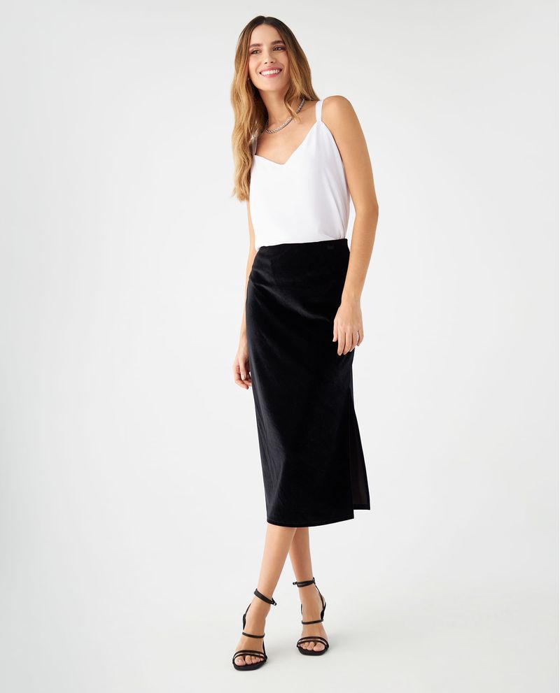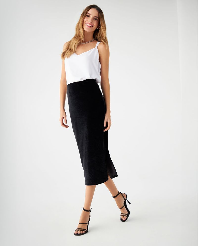 ¡Marca tendencia con los looks más icónicos! Esta es tu temporada y lo sabes, por eso, lleva a tu clóset esta falda en gamusa que te dará el estilo que mereces. De silueta larga para que puedas elevar los resultados y usarla en fechas o encuentros importantes. Su elástico en cintura te permitirá disfrutar de un ajuste cómodo e ideal y, con su abertura lateral en ruedo, le darás un toque más moderno a tu outfit. Combínala como más te guste y róbate todas las miradas.