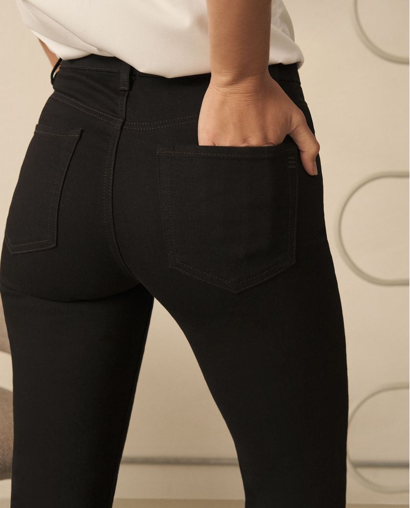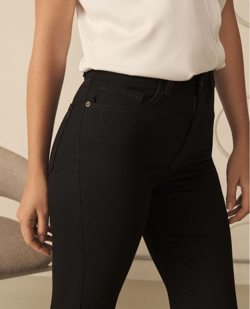 El jean infaltable con ese fit que estiliza sin esfuerzo. De tiro alto y corte Boot Cut, se adapta a tu silueta y alarga visualmente las piernas. Su denim negro le suma un toque versátil y sofisticado, perfecto para cualquier ocasión. Clásico, atemporal y siempre acertado