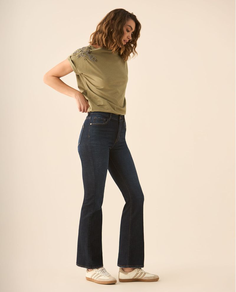 ¡Un básico elevado! Este jean Boot Cut en tono oscuro estiliza la figura con su silueta ajustada, mientras que sus detalles de leves iluminaciones en muslos y realce en costuras lo hacen único y, por supuesto, versátil. Su diseño clásico con cinco bolsillos y pequeños desgastes le dan ese toque urbano que amas, sin perder sofisticación.