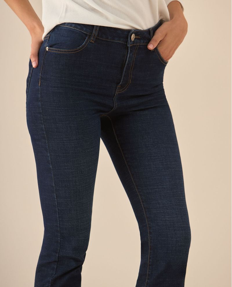 Una silueta que realza con elegancia. Este jean skinny en tono oscuro abraza la figura con su pierna entallada y detalles de bolsillos diagonales al frente y de parche atrás. Ideal para looks de noche o para elevar lo cotidiano con un toque sofisticado y moderno.