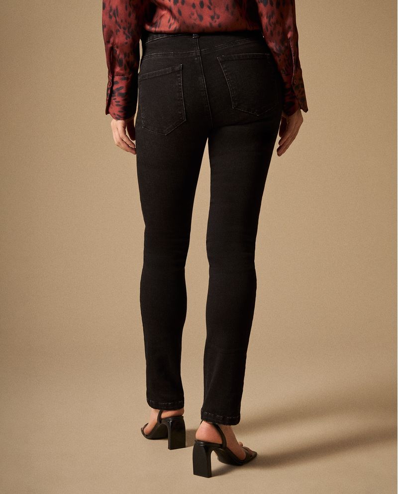 Corte slim que sigue las líneas naturales del cuerpo sin apretar, con tiro medio que estiliza la cintura. Ideal para mujeres que buscan un ajuste moderno y favorecedor que funcione en múltiples ocasiones, desde la oficina hasta eventos sociales.