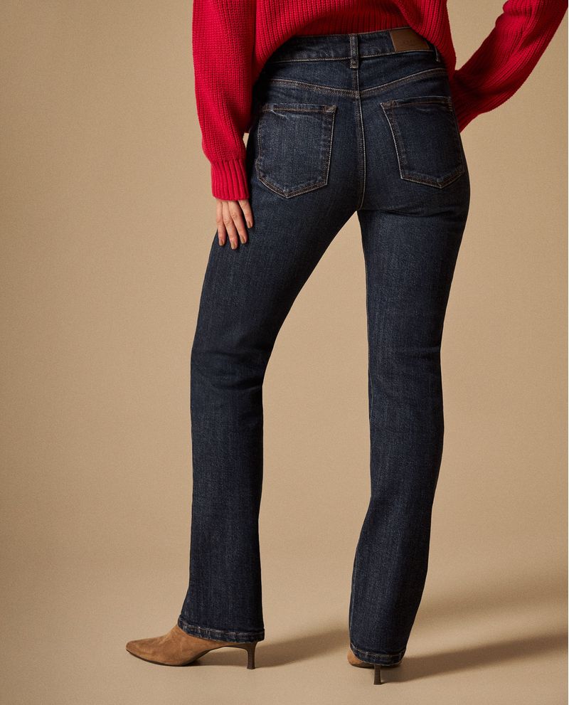 Jean azul oscuro con corte straight que se adapta naturalmente a tu silueta gracias a su composición con elastano. Su construcción premium con costuras reforzadas garantiza resistencia, mientras que el lavado uniforme aporta sofisticación. Diseñado para acompañarte desde reuniones de trabajo hasta planes casuales con la comodidad que necesitas todo el día.