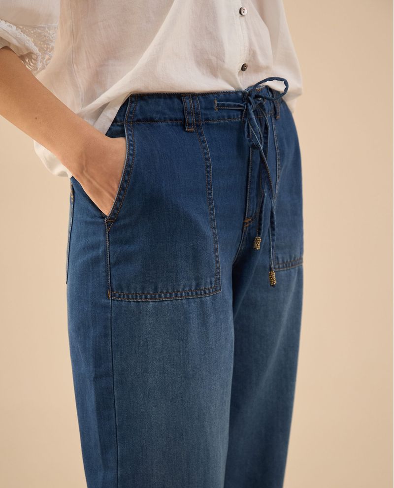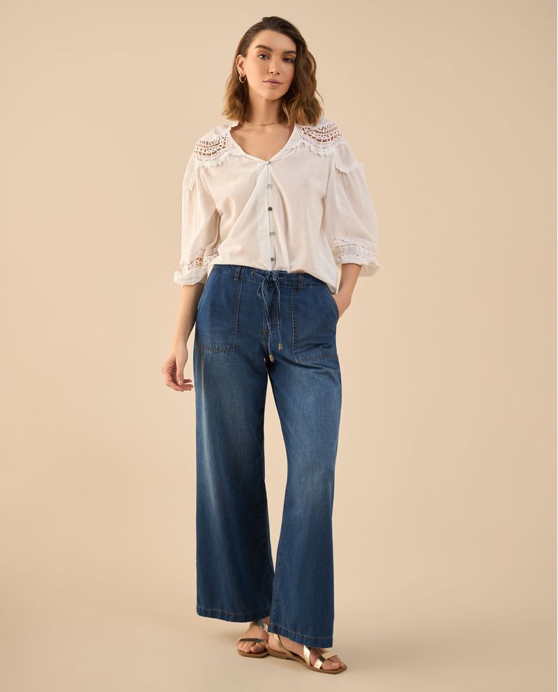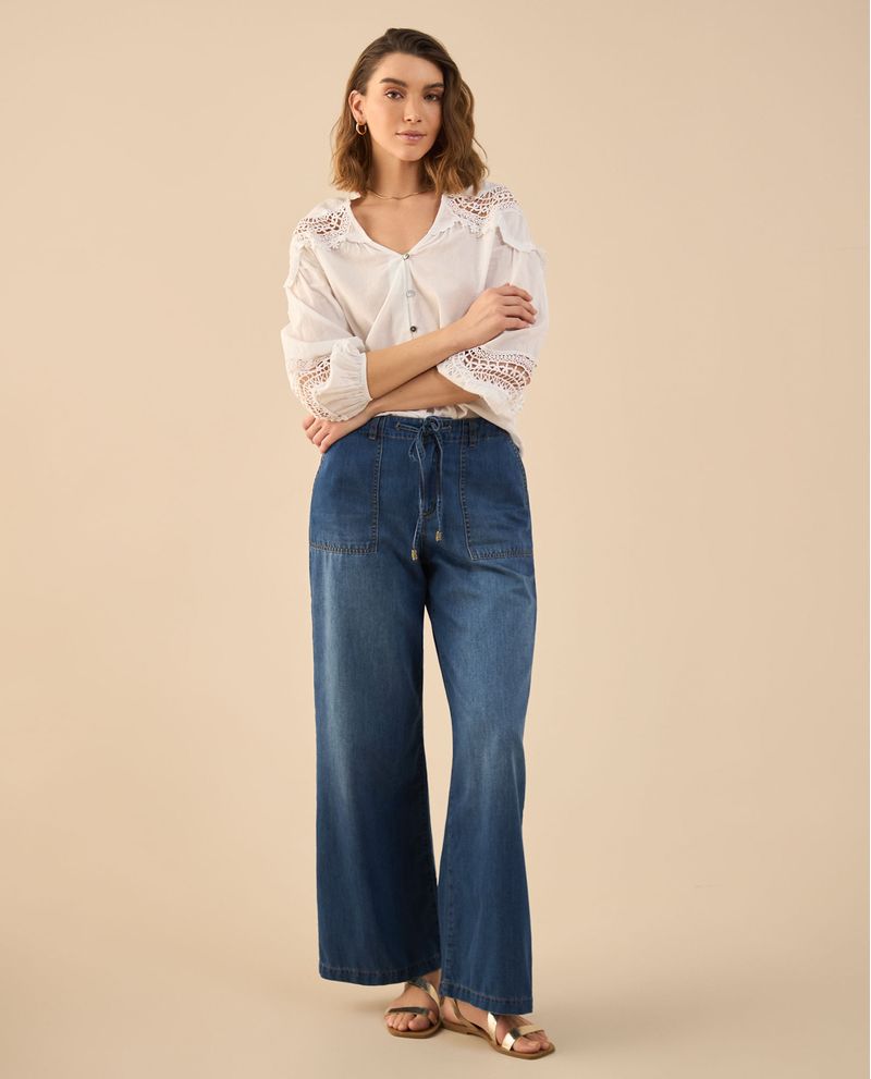 Un jean que redefine la comodidad con estilo. Su tono oscuro y silueta Wide Leg le agregan un aire sofisticado y relajado a la vez, mientras que el cordón ajustable en la pretina suma un detalle inesperado y funcional. Con bolsillos diagonales al frente y de parche en la parte posterior, es una pieza versátil que eleva cualquier outfit sin esfuerzo.