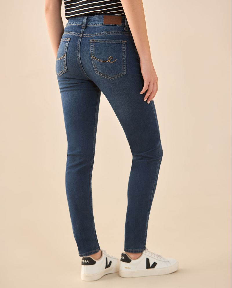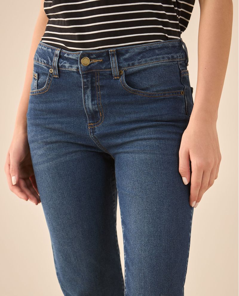 ¡Un jean con carácter! De tono oscuro y cinco bolsillos para que luzcas un look clásico con mucho estilo. De costuras en contraste y bota ajustada que destaca tu silueta. De cierre y botón para mayor comodidad, y pasadores en pretina por si quieres elevar tu aspecto con un cinturón. ¡Un infaltable para destacar!