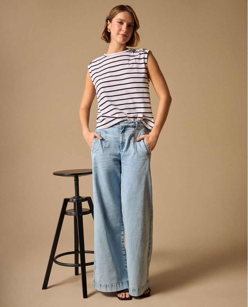 Jean Wide Leg Azul Claro Tiro Alto