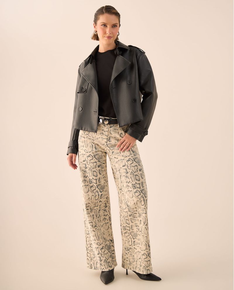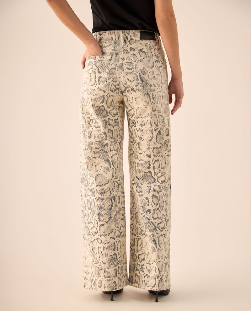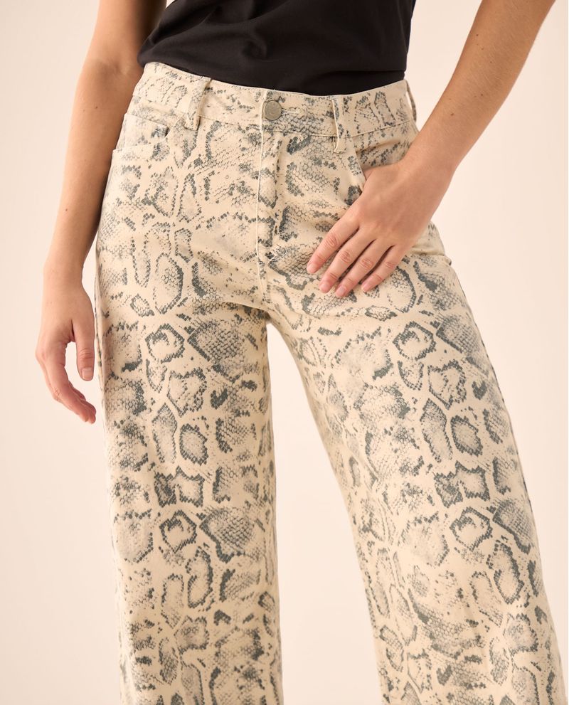 Jean Wide Leg Estampado Serpiente Beige