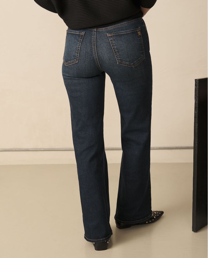 Con corte amplio y tono oscuro, este jean wide leg es ideal para crear un look relajado pero estiloso. Los cinco bolsillos y el ajuste con cierre y botón lo hacen cómodo y práctico.