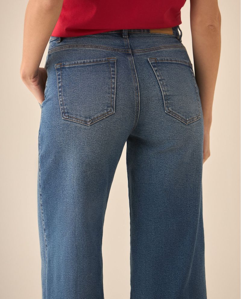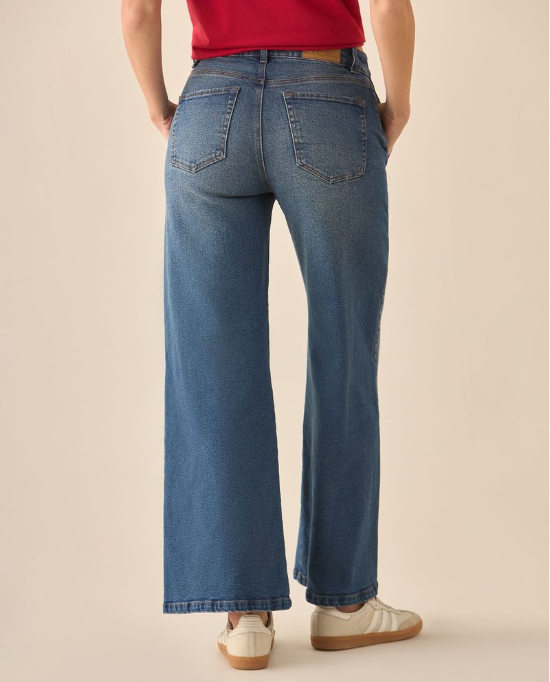 Una silueta infalible para looks vanguardistas. Este jean de bota amplia en tono medio, combina bolsillos diagonales al frente con bolsillos de parche en posterior para sumar forma y funcionalidad. Combínalo con blusas fluidas y botines, o con camisetas y sandalias, y siempre destacarás.