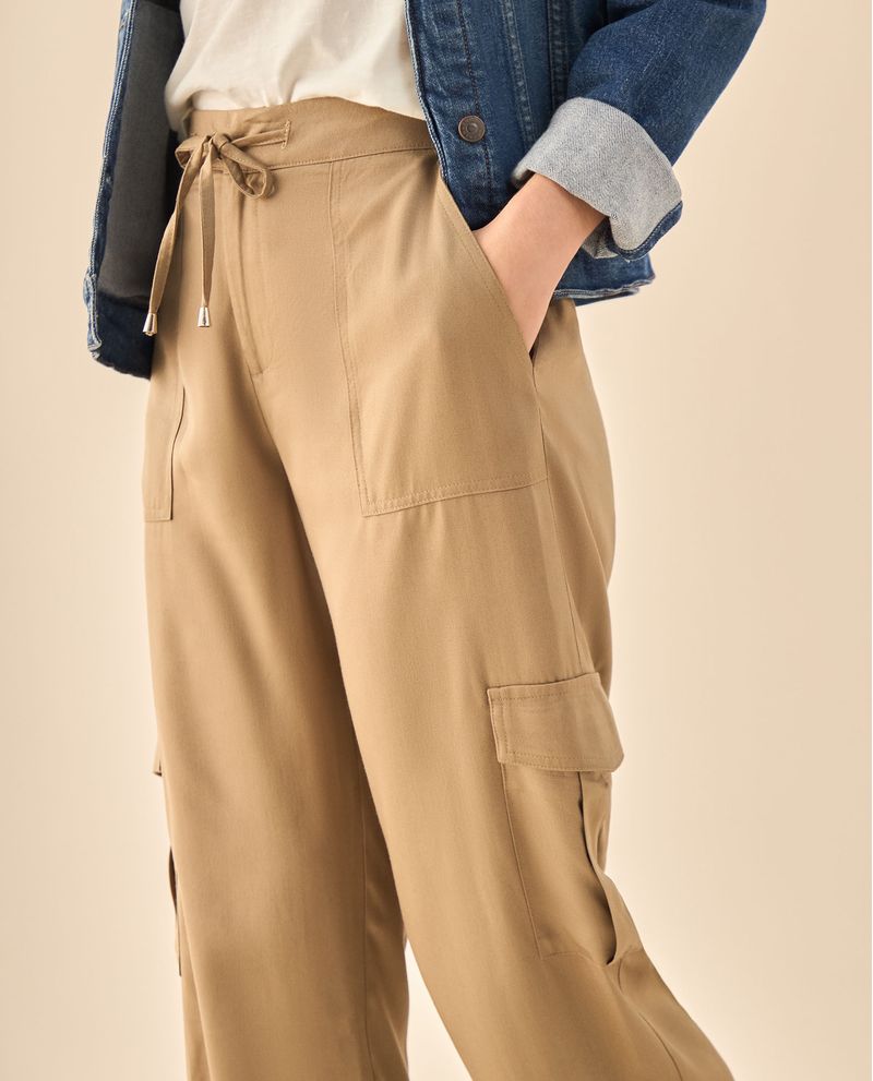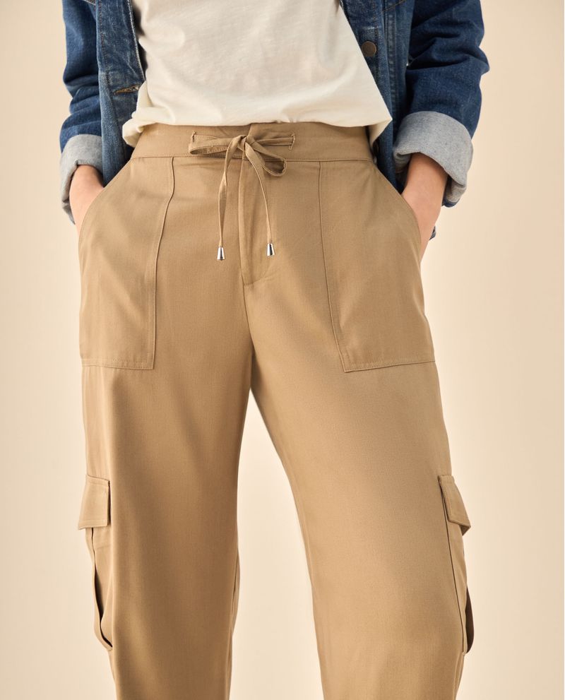 Pantalón cargo que redefine la comodidad urbana con su sistema dual de cintura elástica y cordón ajustable, además de seis bolsillos estratégicamente ubicados que eliminan la necesidad de bolso en salidas cortas. Su corte relajado se adapta naturalmente a diferentes siluetas mientras que los detalles ajustables garantizan el fit personalizado que buscas para tus días más activos.