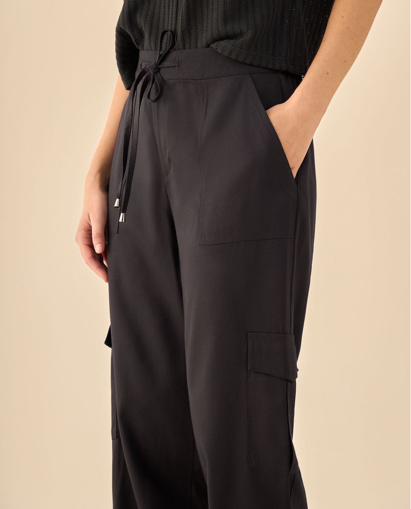 Pantalón cargo que redefine la comodidad urbana con su sistema dual de cintura elástica y cordón ajustable, además de seis bolsillos estratégicamente ubicados que eliminan la necesidad de bolso en salidas cortas. Su corte relajado se adapta naturalmente a diferentes siluetas mientras que los detalles ajustables garantizan el fit personalizado que buscas para tus días más activos.