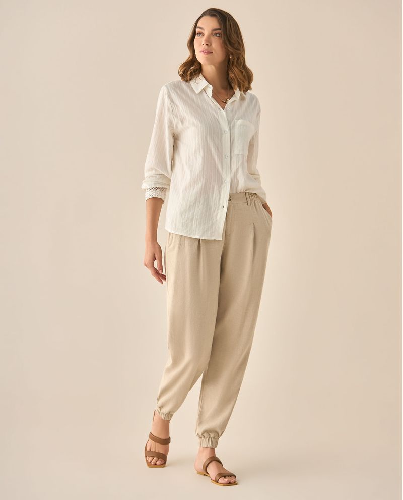 ¡Este pantalón es el equilibrio perfecto entre comodidad y estilo! Su pretina elástica lo convierte en una prenda cómoda y versátil, mientras que los bolsillos diagonales son súper útiles y prácticos. Cada detalle le suma elegancia sin perder frescura. Ideal para un look relajado pero con onda.