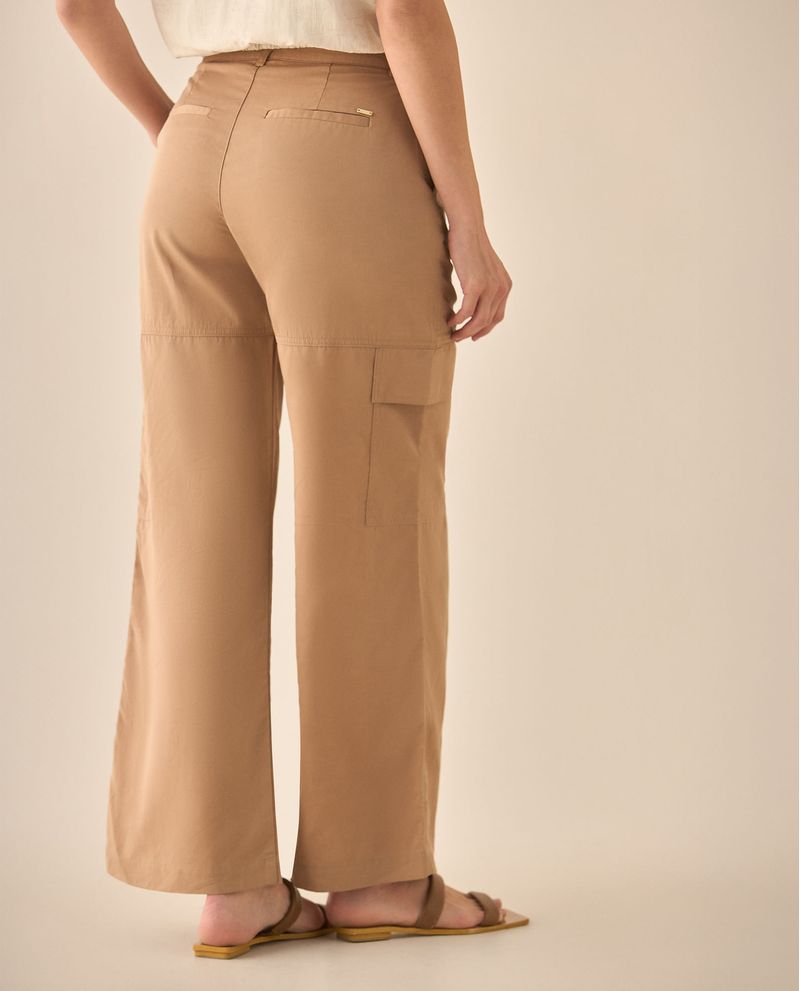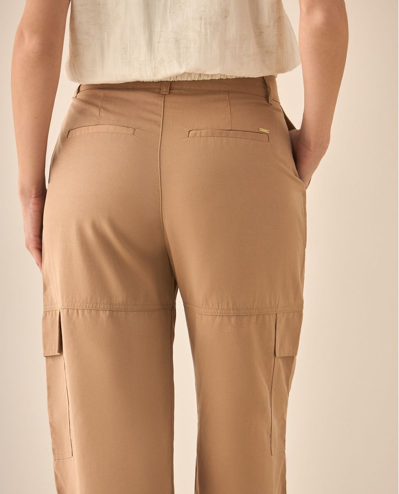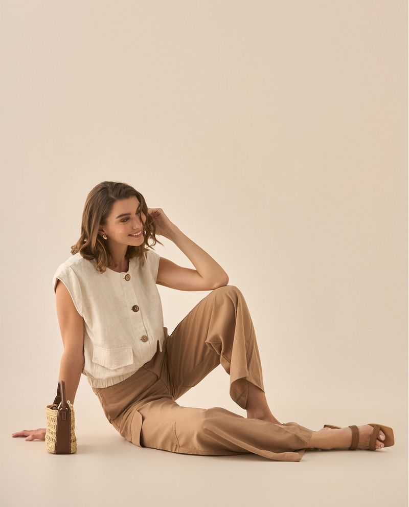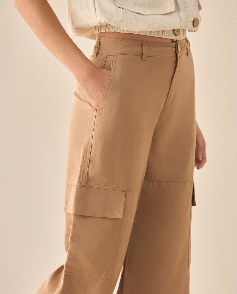 Este pantalón amplio, suma funcionalidad con sofisticación. Con sus bolsillos diagonales y tapas decorativas en los costados, resulta perfecto para dar movimiento y equilibrio a looks atemporales pero con estilo.