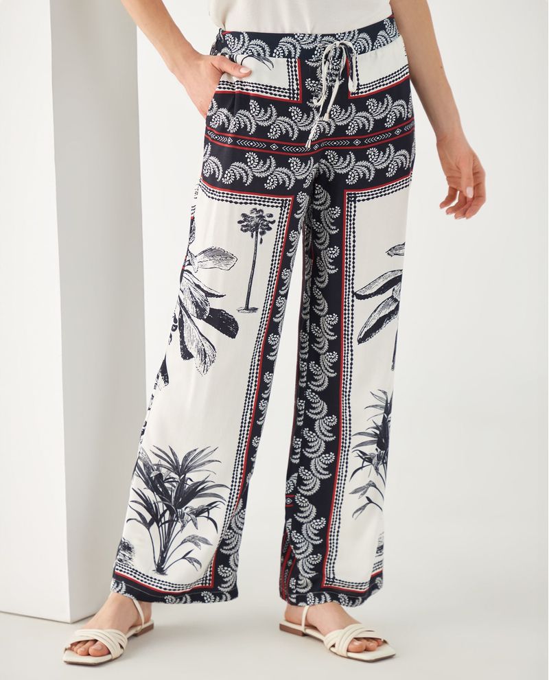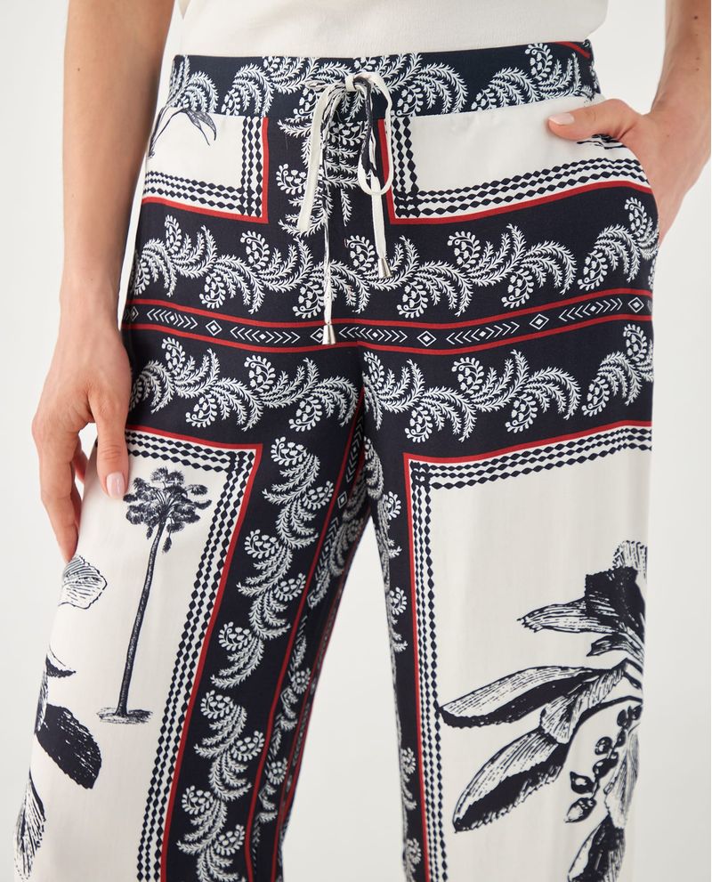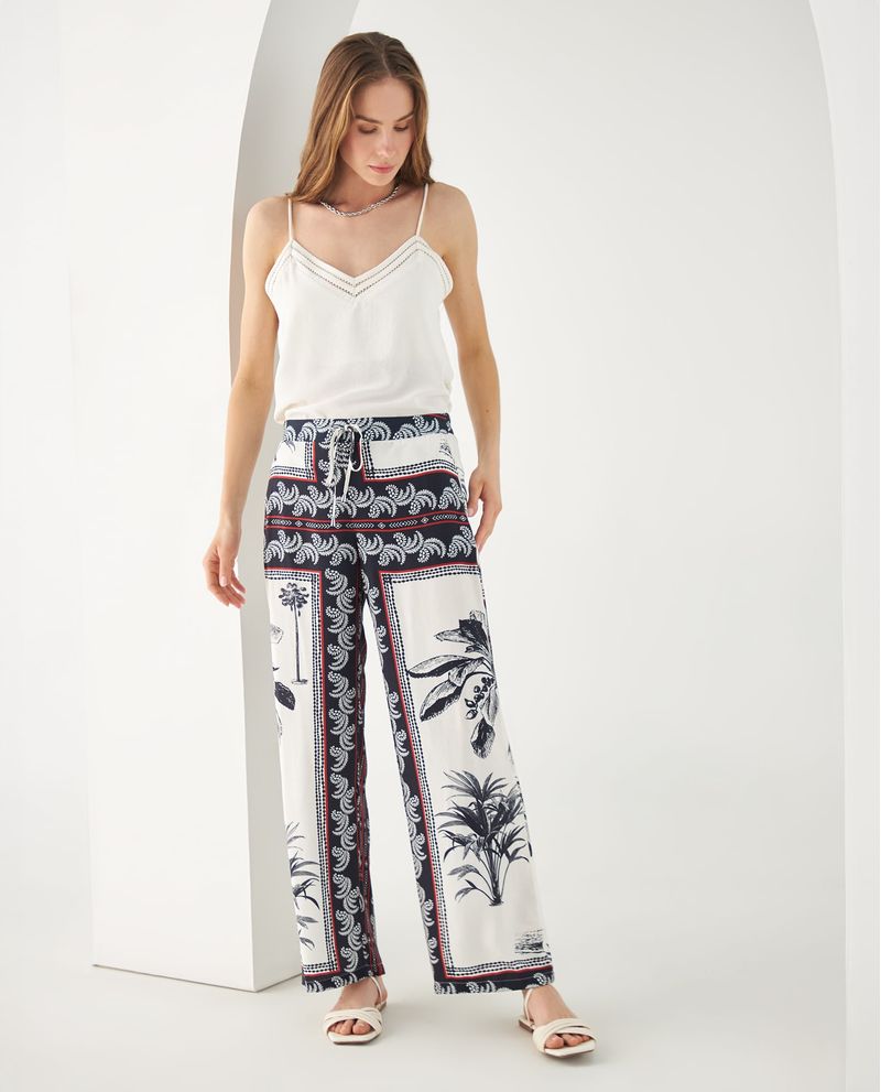 Eres tan auténtica como este pantalón, por eso sabemos que debes tenerlo en tu armario para que disfrutes del mejor aspecto sin esforzarte demasiado. Su diseño de tela fluida con estampados arabescos lo hace súper divertido, mientras que su ajuste lo convierte en la prenda más cómoda de tu armario.