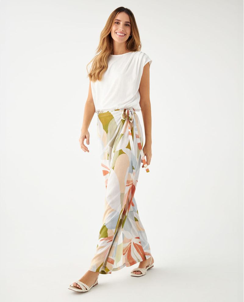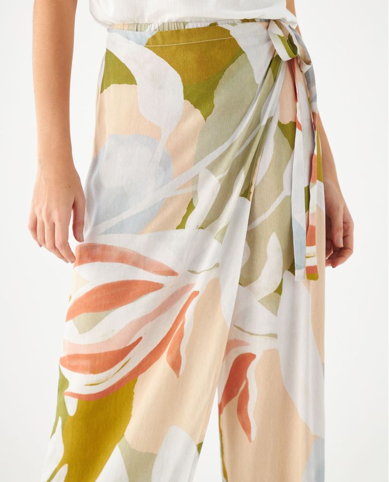 ¡Color, estilo y modernidad en una misma prenda! Un pantalón perfecto para esos días de sol en los que quieres darle alegría y autenticidad a tus looks. Tiene un diseño tipo pareo, con una tapa en delantero que anuda en costado, y que te permitirá revivir la magia de los veranos más sofisticados. Su tela fluida y pretina elástica lo hace tan cómodo y fresco, que no querrás cambiarlo por ningún otro.
