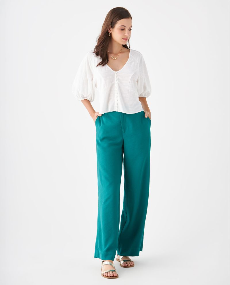De tela fluida y bota recta para que alcances el equilibrio perfecto entre comodidad y estilo. Disfruta del ajuste seguro que te ofrece su pretina elástica y no dejes pasar el toque de funcionalidad que le añaden sus bolsillos, para que esta se convierta en la prenda ideal para moverse contigo. Perfecta para lograr un look relajado y elegante a la vez.