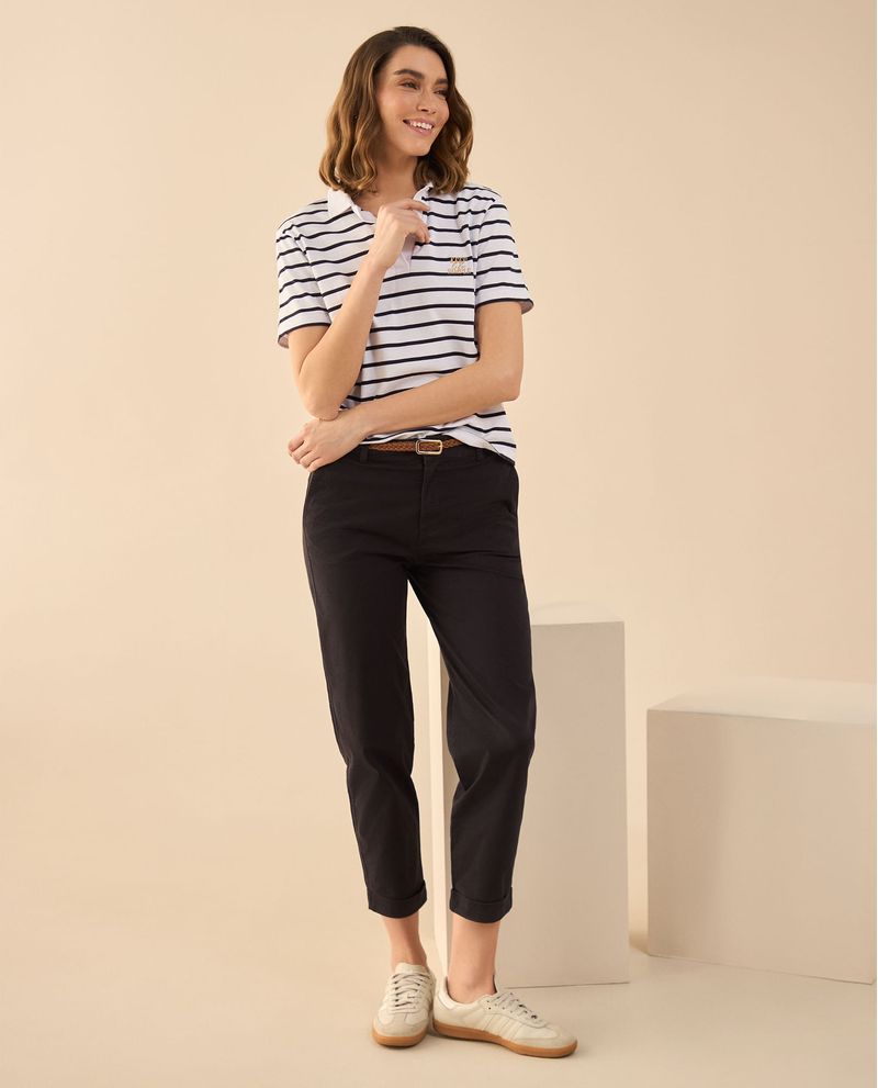 ¡Un imprescindible de fondo de armario! Este pantalón de bota recta y bolsillos definidos combina sofisticación y versatilidad, ideal para cualquier ocasión. Su cierre clásico y cortes precisos garantizan un ajuste impecable. Lúcelo en tus días de oficina o reuniones formales.