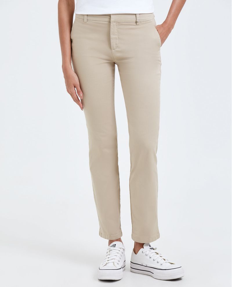 Pantalón de tiro medio, con bota recta. El corte clásico y el diseño atemporal de este Pantalón estilo chino combina absolutamente con lo que le pongas. Lo confeccionamos en algodón ligeramente elástico por lo que te brinda mayor flexibilidad y te ofrece una silueta mucho más femenina. Se completan con trabillas en la cintura, bolsillos decorativos y ajuste con cierre y ganchos ocultos.