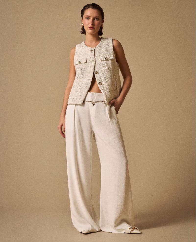 Pantalón Wide Leg con Cadena Dorada