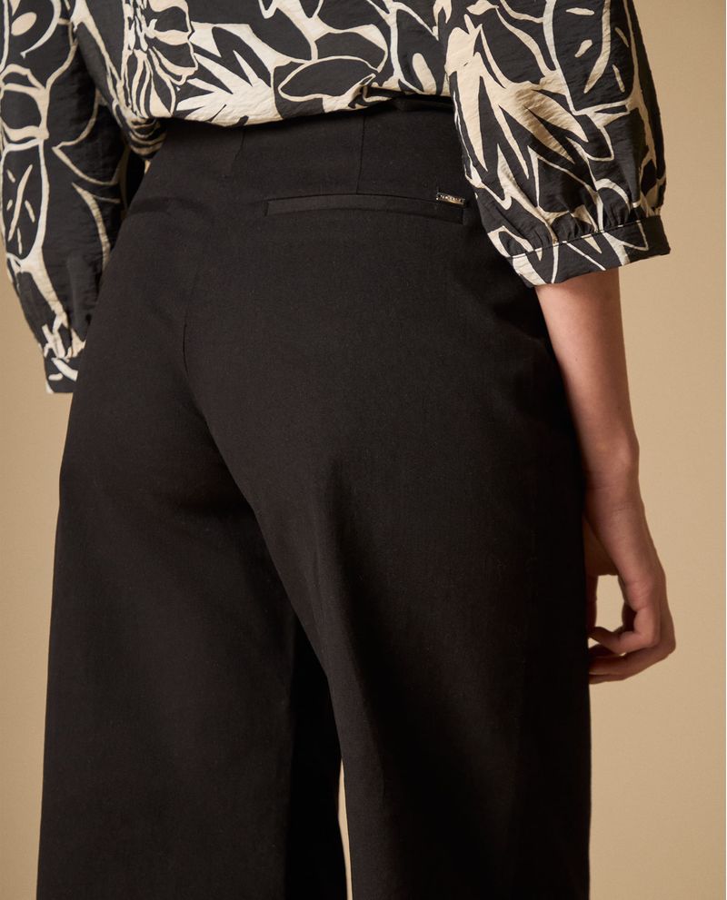 Su corte wide leg con cintura alta favorece especialmente figuras que buscan alargar las piernas y definir la cintura. Las piernas amplias equilibran caderas y hombros, creando una silueta armoniosa. Ideal para mujeres de tallas XS a XL que valoran la comodidad sin renunciar al estilo profesional.