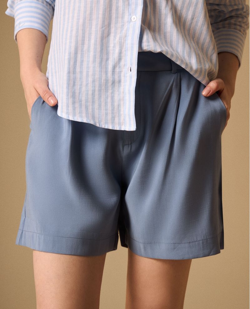 Shorts con cintura alta y cinturón incluido que estiliza la silueta mientras ofrece comodidad durante todo el día. Su mezcla de rayón y poliéster garantiza una caída natural y fácil mantenimiento, perfectos para la oficina, reuniones casuales o eventos sociales donde necesitas lucir pulida sin sacrificar movilidad.