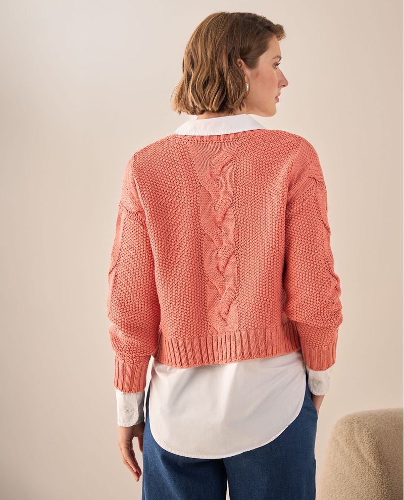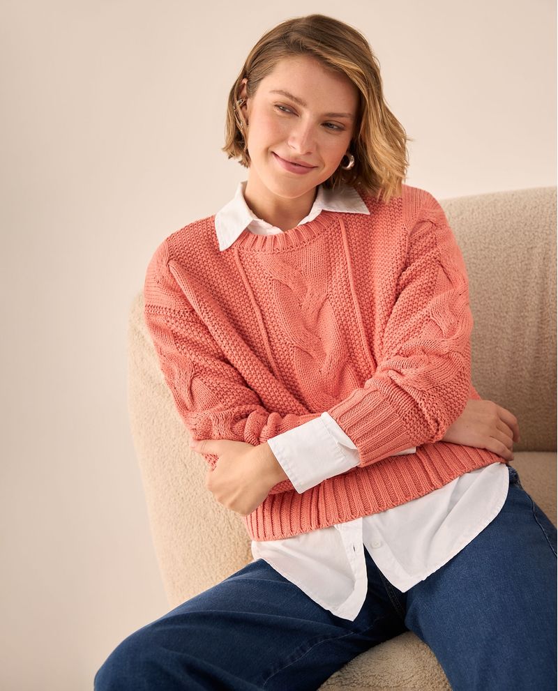 Suéter Tejido Cable Rosa Coral