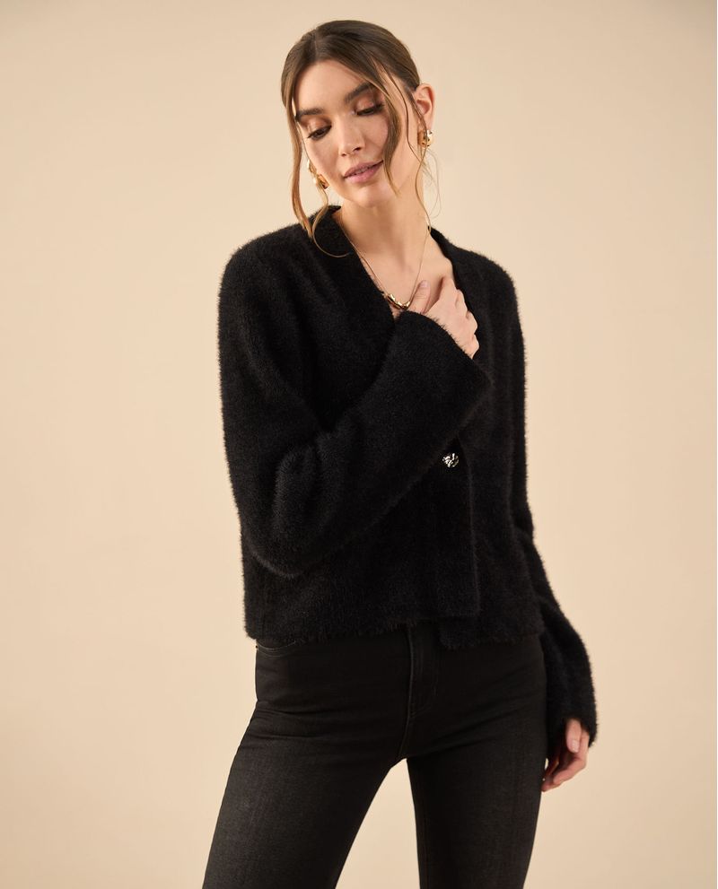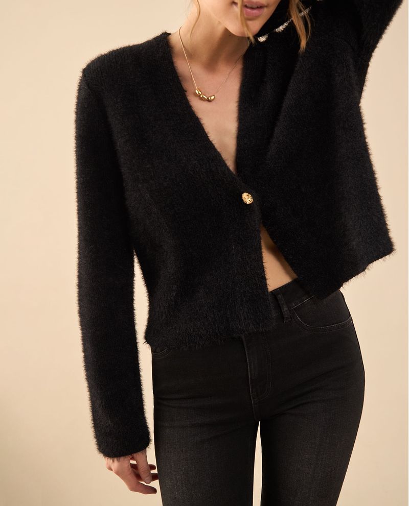 ¡Así luce el minimalismo en su mejor versión! Este suéter de tela afelpada redefine la comodidad con su tacto suave y diseño depurado. El escote en V y el ajuste a un solo botón crean una silueta elegante y fácil de combinar, perfecta para llevar sobre una camisa o en clave más relajada. Atemporal, versátil y con ese aire effortless que siempre funciona y te hace lucir espectacular.