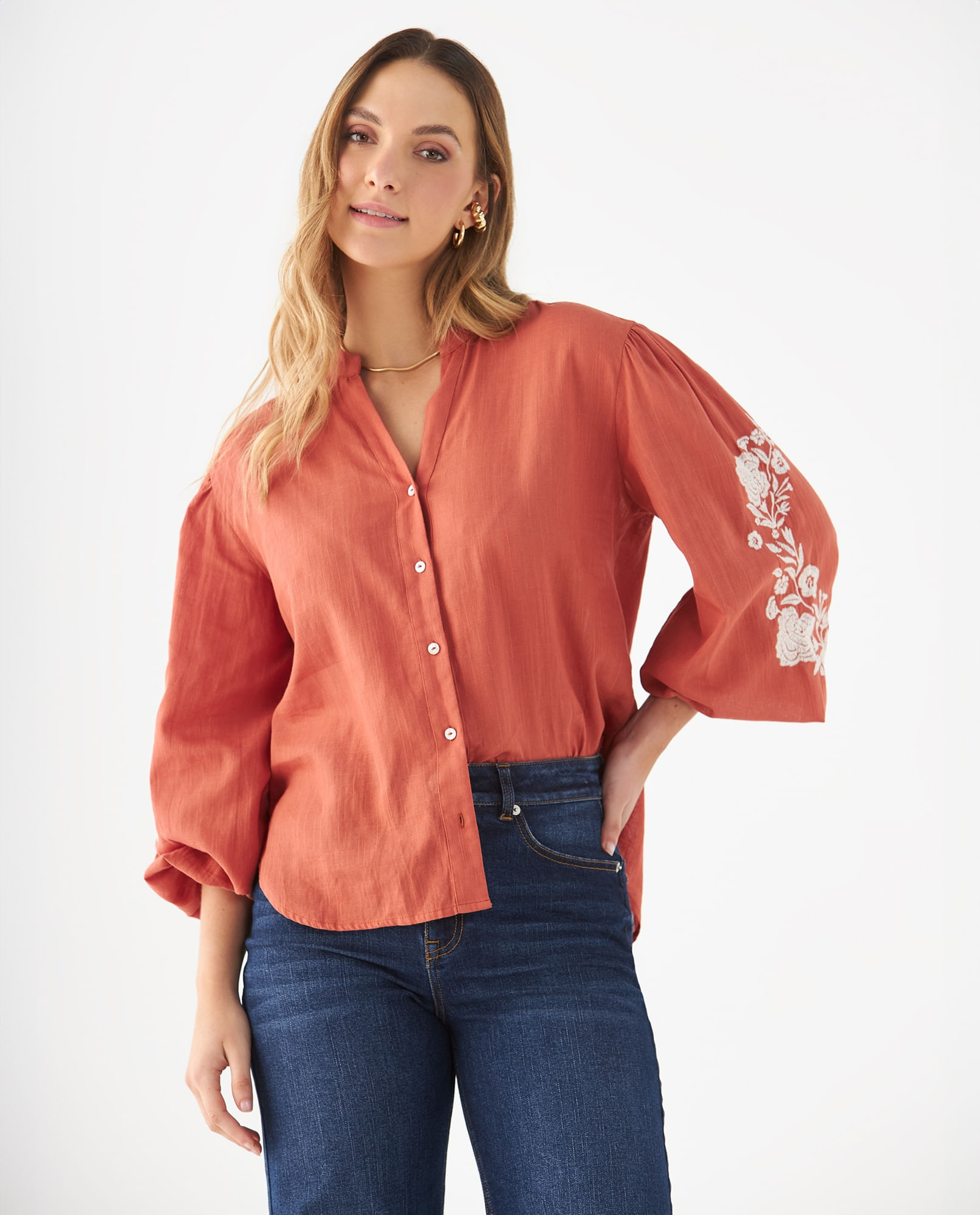 Camisa con detalles bordados para mujer