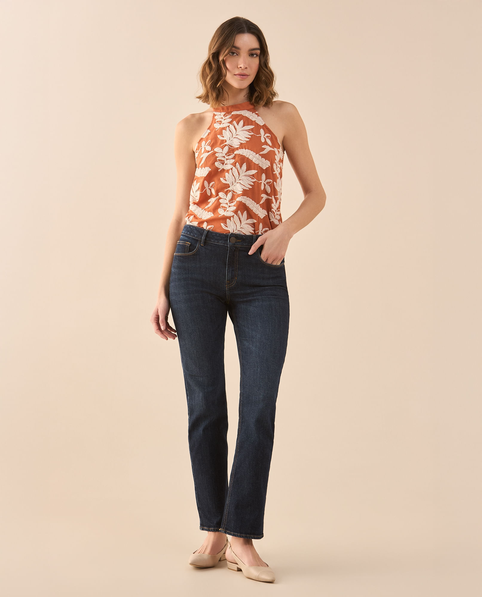 Compra rápidaJean tono oscuro de bota ajustada para mujer
