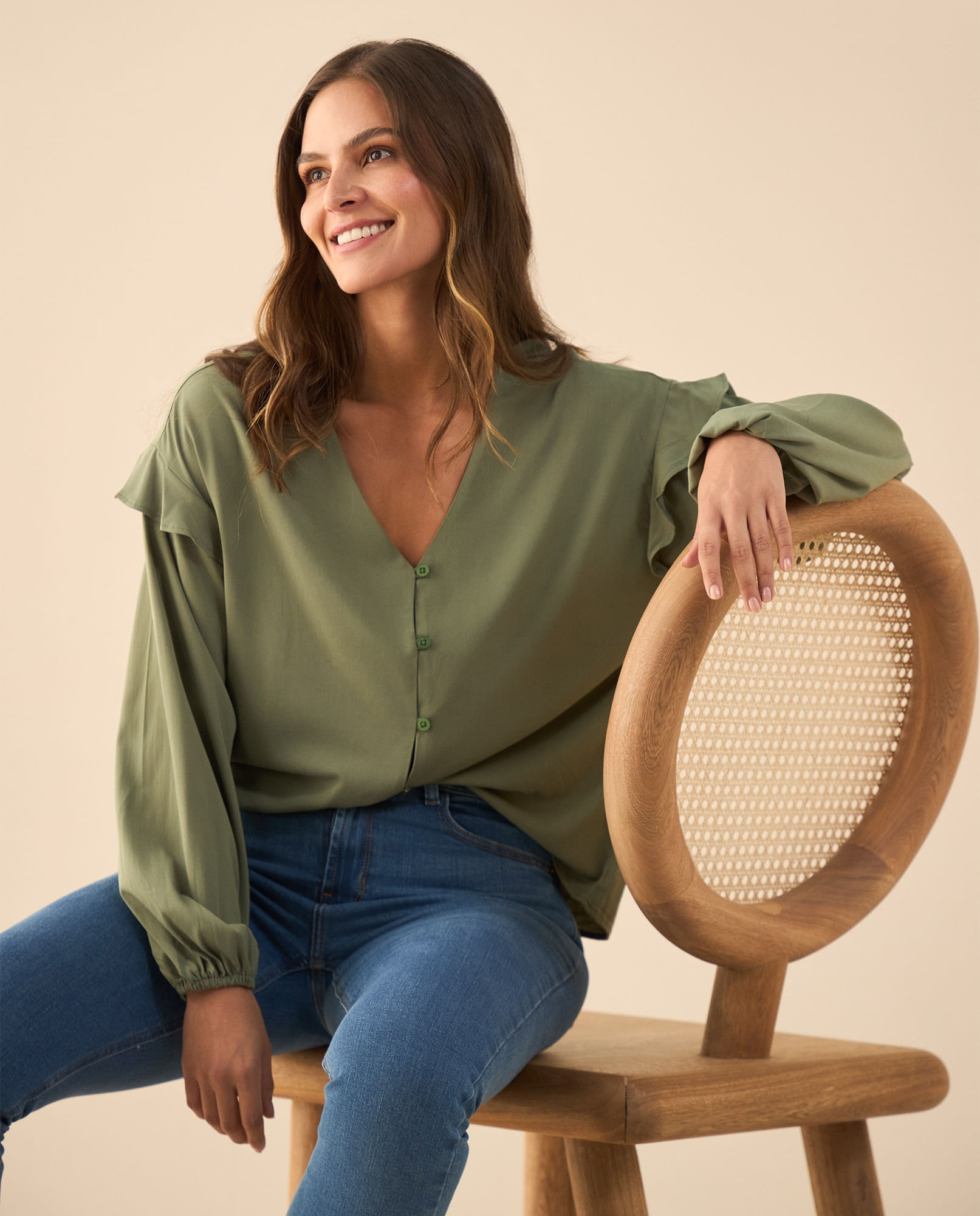 Camisa cuello en V para mujer