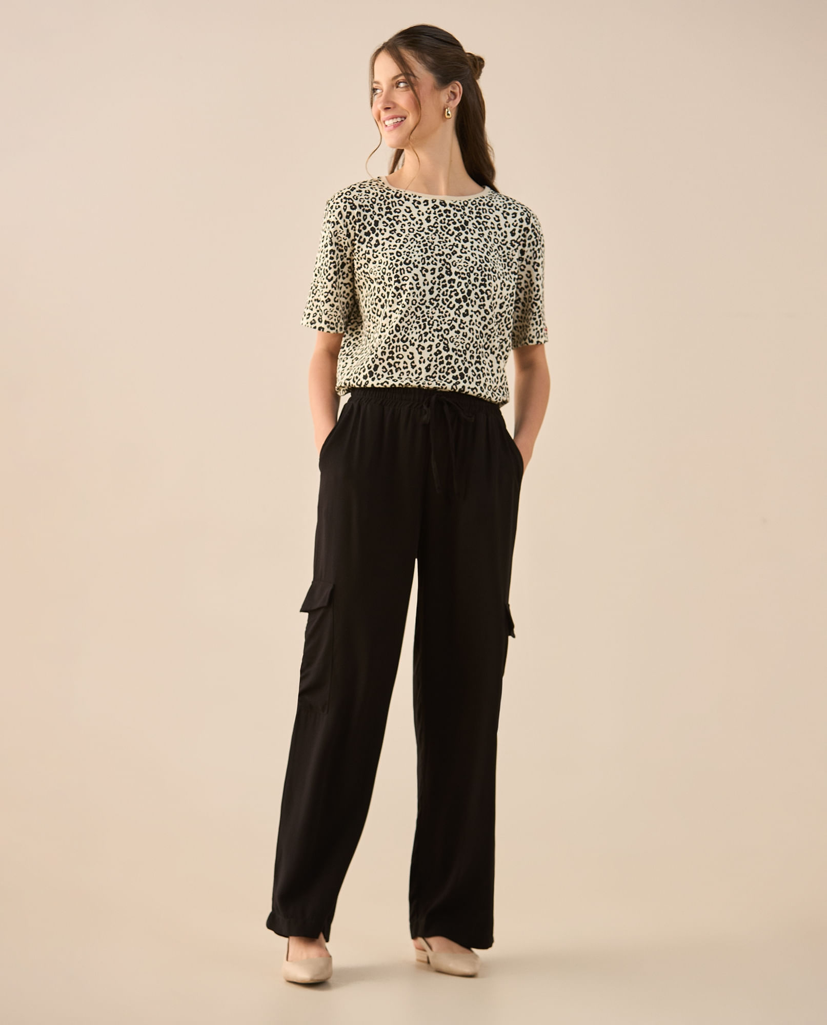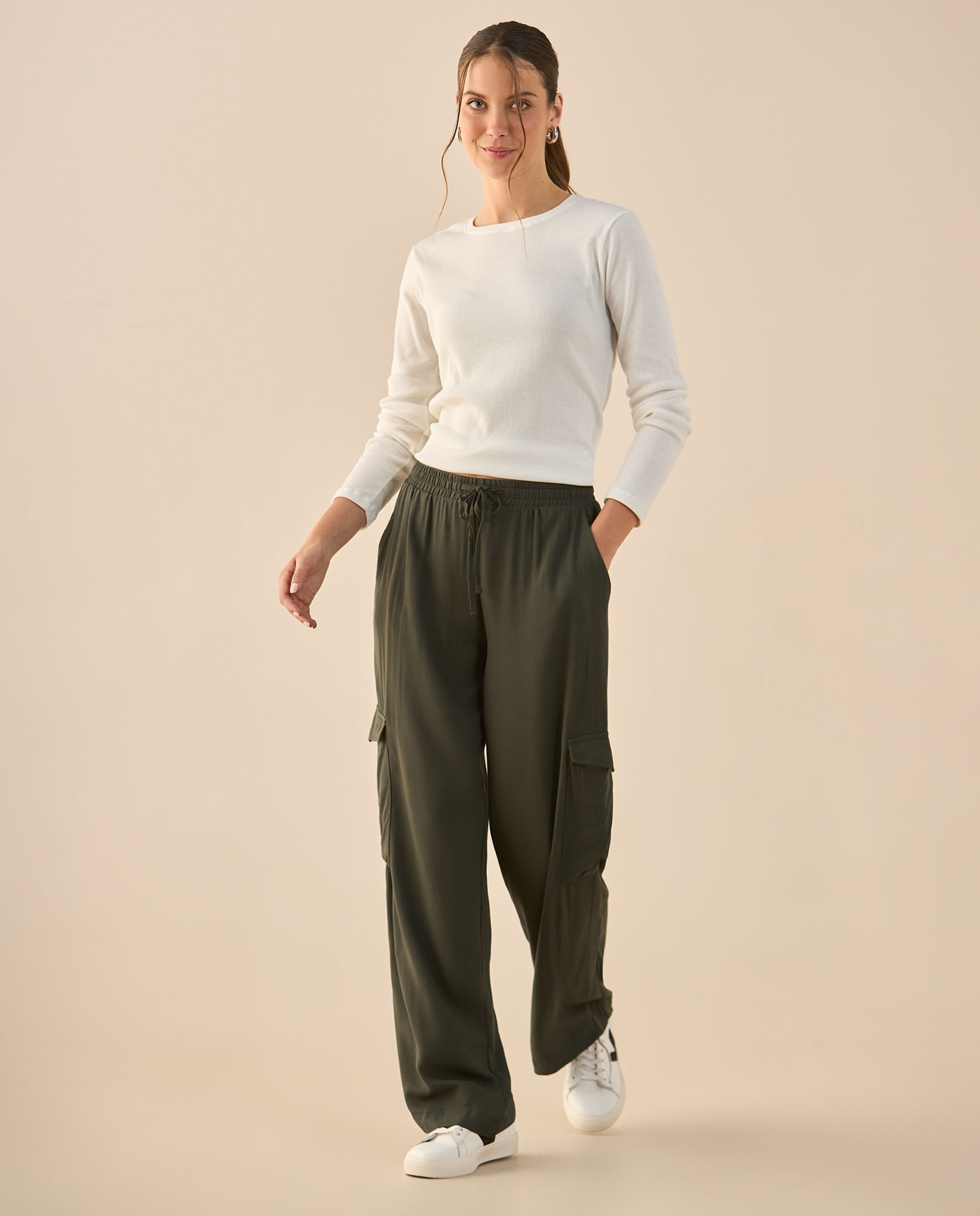 Compra rápidaPantalón de tela fluida para mujer