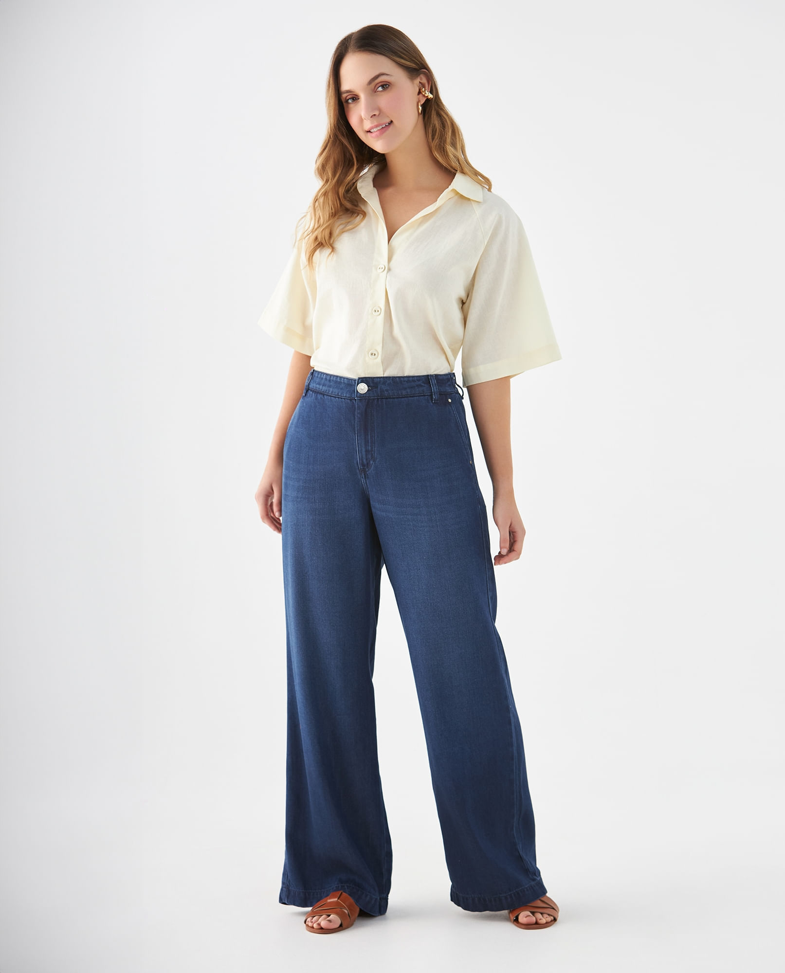 Jean Wide Leg pretina elástica posterior para mujer