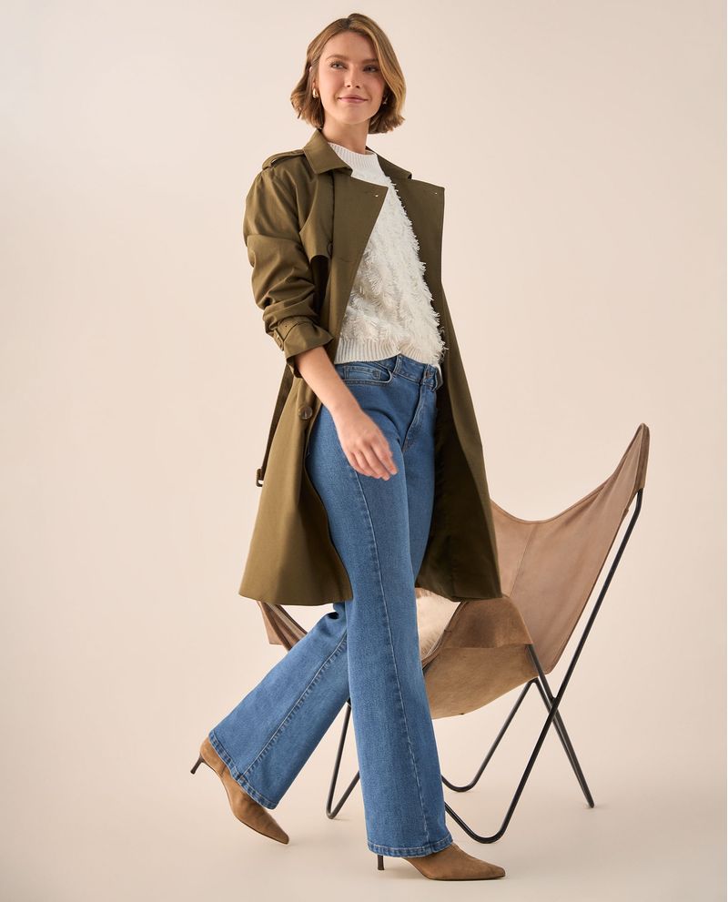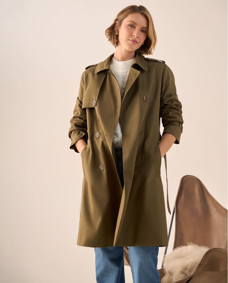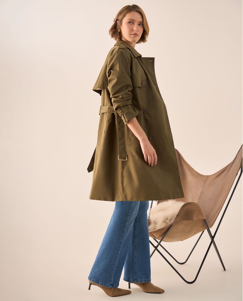 Corte regular que favorece diferentes tipos de silueta, con largo midi que estiliza la figura. El cinturón permite ajustar la cintura según preferencia, creando desde looks más relajados hasta siluetas más definidas. Ideal para mujeres que buscan elegancia sin sacrificar comodidad.