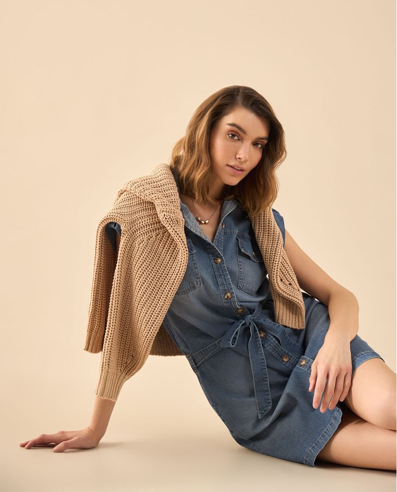 ¡Un todo en uno para días de apuro! Si el denim siempre es buena idea, un vestido en denim es la opción ideal. Esta prenda no solo te sacará de apuros, sino que te brindará un estilo auténtico y muy novedoso. Llévalo con accesorios y disfruta de un look a la moda.