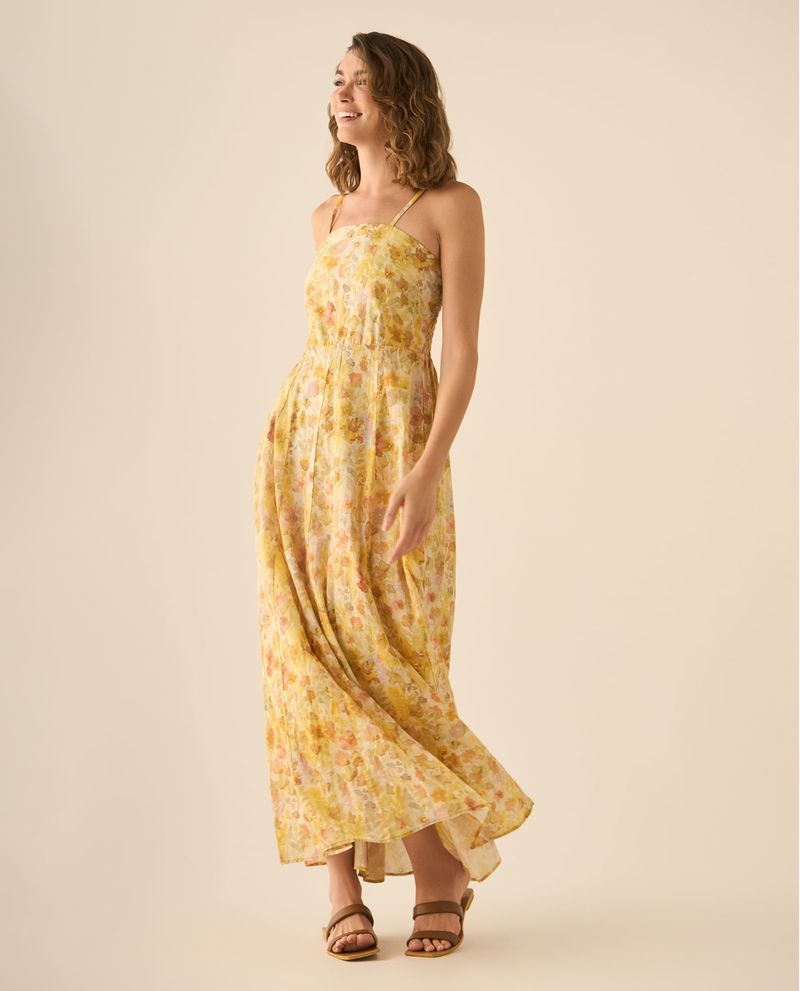 ¡Querrás usarlo en todos los días soleados! Este vestido, romántico por naturaleza, se robará toda la atención de tu armario; su estampado de flores lo hace único, mientras que su diseño largo lo convierte en la pieza ideal para llevar en los planes importantes. Su escote recto y tiras graduables le hacen honor a tu figura, ideal para cuando quieres sentirte linda y ligera.