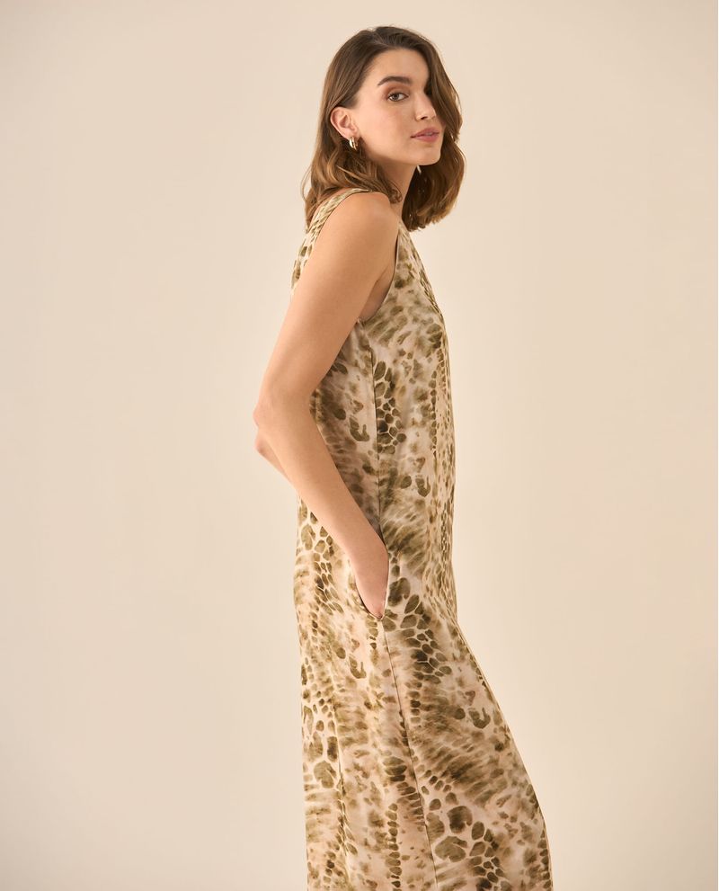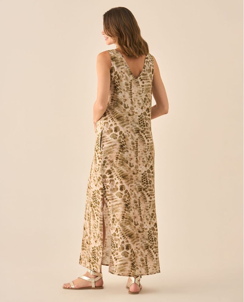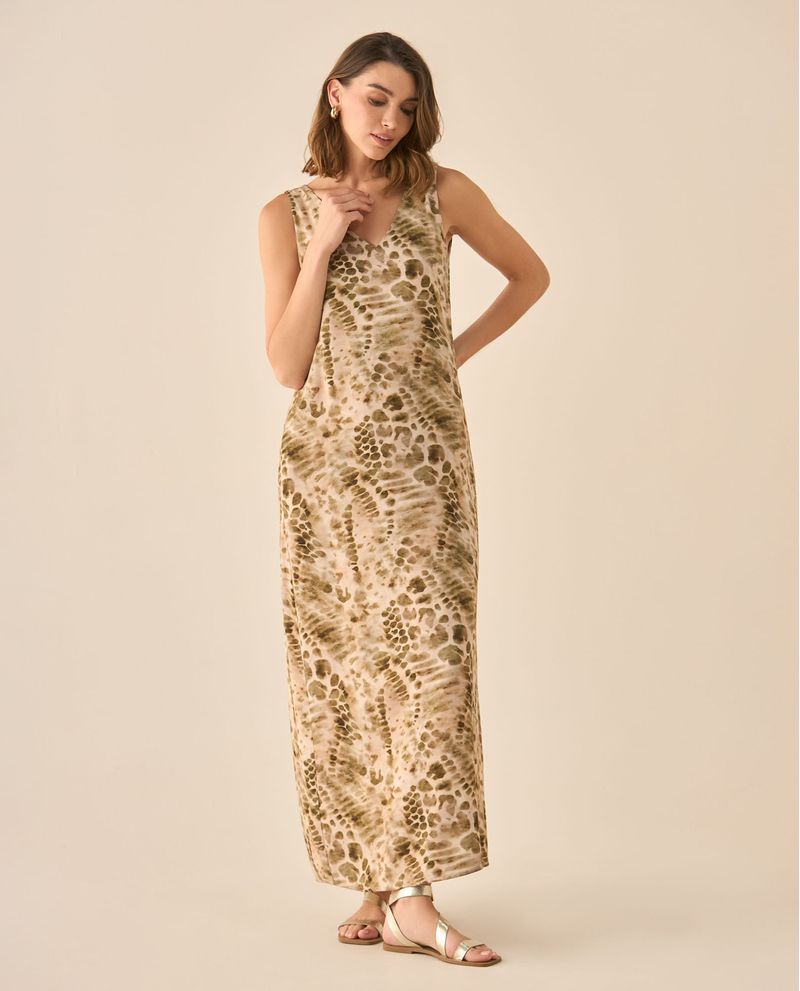 ¡Femenino y elegante! Un diseño largo, fluido, con escote en V y estampado abstracto que se mueve contigo. La abertura lateral añade un toque de ligereza sutil. Ideal para tardes cálidas, citas especiales o simplemente sentirte increíble.