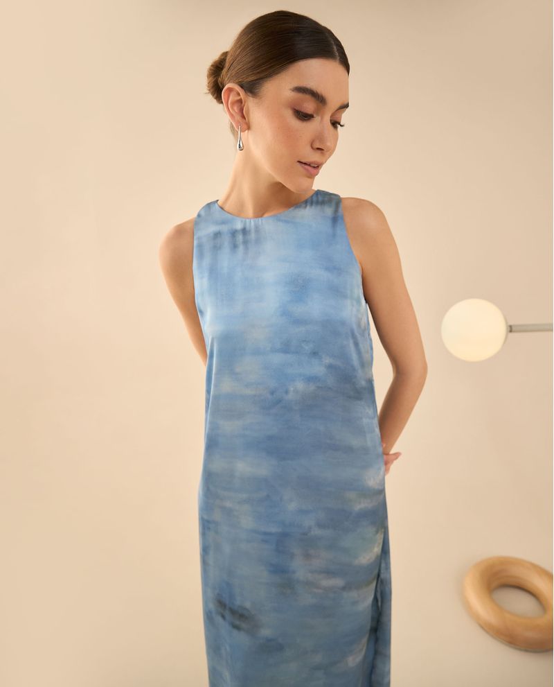 Este vestido largo en satín captura la luz de manera sutil, resaltando su acabado sofisticado. Su cuello redondo y la abertura lateral en el ruedo aportan equilibrio entre sencillez y movimiento, mientras que el ajuste con botón en la parte posterior le da un toque refinado. Perfecto para esos momentos en los que menos es más, pero el impacto sigue siendo inolvidable.