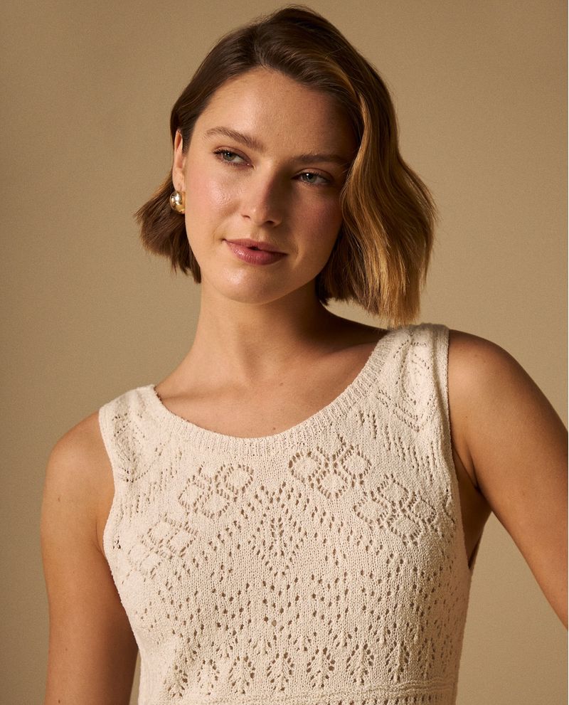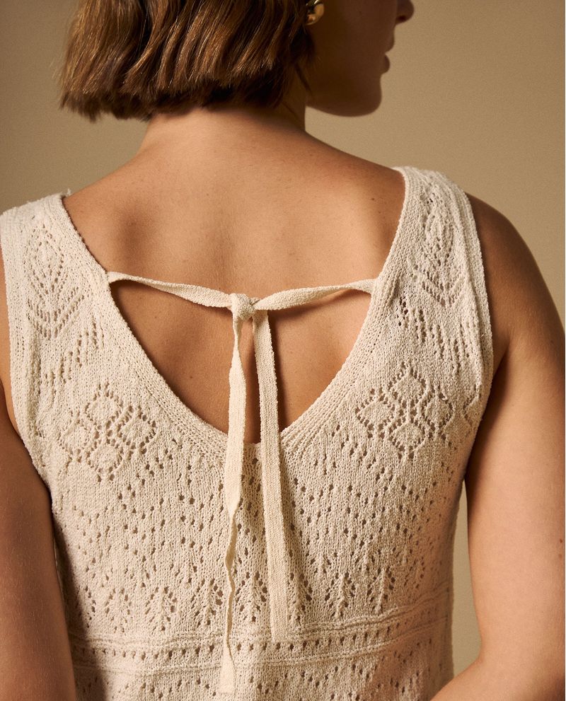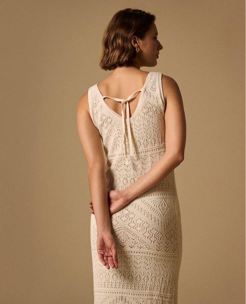 Vestido Midi Tejido Calado con Cordón Espalda